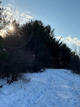 in the moments of stepping away from all that is happening – and they are merely slight moments – we seek any source of reassurance, any source of comfort, any source of grounding. we try to get good sleep, eat well, drink water, exercise. we try to find things to laugh about, things that take us away from the chaos. we hug the dog. we listen – still – to george winston’s december album. we hike when we can. we plan distractions.