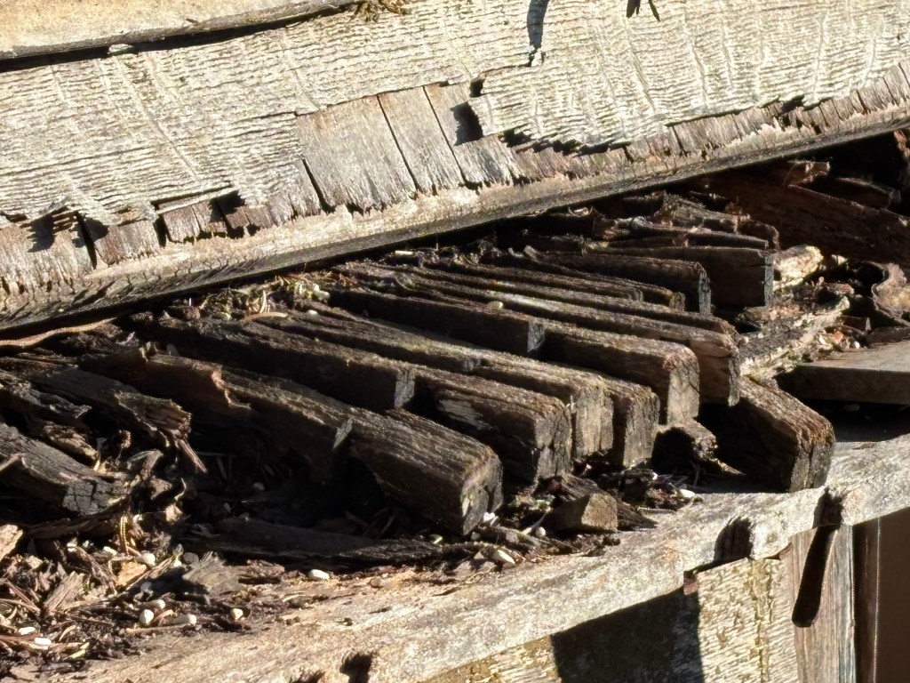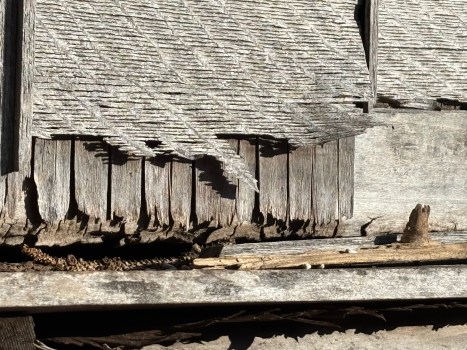 as each layer succumbs to the weather, we see a tiny bit more of the heartandsoul of our barney. as each layer peels back, falls off, there is evidence of yet another layer, the simple insides of an acoustic instrument whose voice box is the space within.