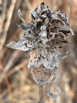 in the new eyes i have since going slower, i feel drawn to each of these. i could be completely happy lingering on the trail, photographing one after another of these dried flowerheads, each distinct, each stunningly beautiful. the tall and stately, the rounded, the wishing seeds clinging to the rough edges after floating on the wind. so much life in so much fallow.