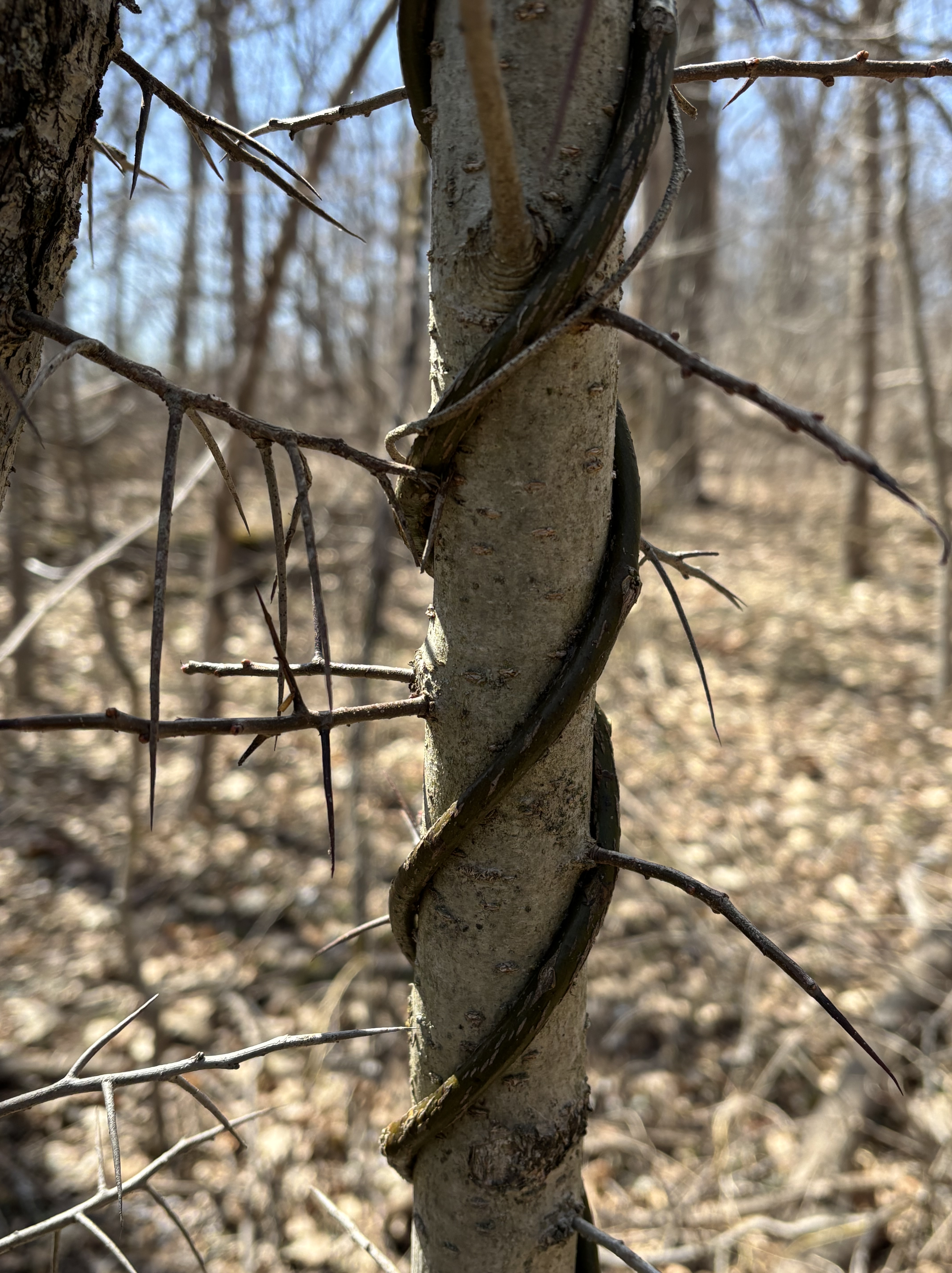 “vines can deform trees by interfering with branch growth.” “active, localized efforts to manage and eradicate wild grapevines exist in wisconsin, primarily to prevent them from choking out trees and native vegetation.”