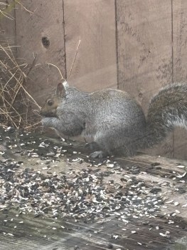 our birdies love dining on these flat surfaces and gather together on the piano or the stand or off to the side, waiting their turn. the squirrels are zealous about these flat surfaces, as the birdfeeder gives them a tiny run for their money, a small challenge that is, however, most definitely not insurmountable. either way, they fill up to run off and provide food to the others.