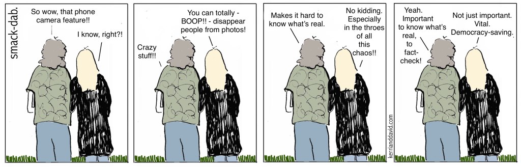 the ability to manipulate any story, any image, any narrative, any situation, any anything is on the exponential rise. it is hard to discern what is real and what isn’t, what communication we receive or read is real and what isn’t, what images we see are real and what aren’t.