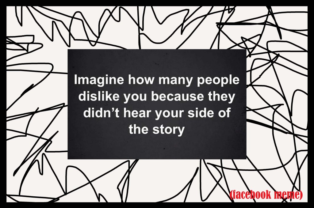 devastated. how many of us have been at the center of the firing squad, muzzled and treading water, stuck in inertia, unable to give voice to the othersideofthestory, in the center of misinformation, incomplete information, an absolute lack of information, opinions and dislike forming from the dust of others’ untruths, others’ prejudices, others’ agenda? devastated that there is so much collateral fallout, so much loss, simply because they didn’t hear your side of the story. it’s shocking. and completely not shocking.
