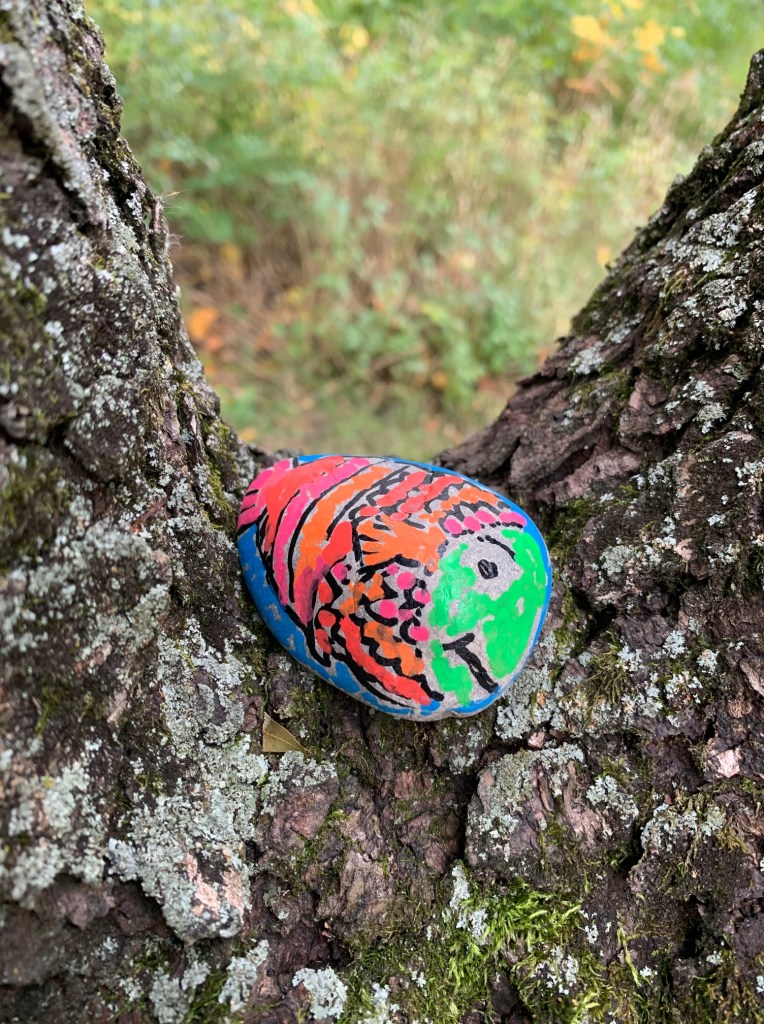 and so it comes as no surprise that we have another new habit. our new Thing is painting rocks. more and more and more rocks. i’ve blogged about this – sitting together with our paint pens and rocks we have gathered at the beach down by the historic beachhouse where we held our bonfire-foodtruck-hulahoop-cupcake-dancewithabandon wedding. it is as much a joy to hide these rocks as it is to paint them and we giggle like little kids as we place them in the crooks of trees, on stumps, on a curve in the trail. we just finished placing the last of the painted rocks – this fish included – so we know we’ll be at our tiny canvases again soon. it’s predictable. like english muffins or potatoes and eggs.