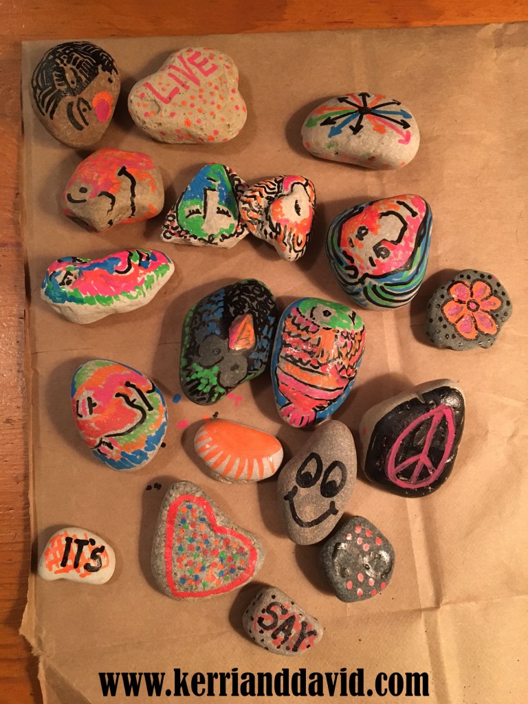 i suppose that we can think of other things to do. outside of work or chores there are infinite possibilities. but i am not unhappy that our choice – more often than not these days – is to sit and chat and paint rocks together…preparing folk-artsy positive messages to leave for other people to find.