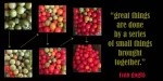 at a time when ministers of music all over are stressing about advent, i am reminded of building cantatas…much like van gogh’s words, “great things are done by a series of small things brought together.” to try and rehearse an entire cantata start-to-finish with a choir is to overwhelm them. to introduce songs, one by one, allowing singers to bond with the music, to sink into it, to want to really sing it, invest in it, is to give music the space it needs to grow. integrating all the pieces together works when each individual piece is honored within the context of the whole. a common goal. the green turns to red. the ethylene of each choir member – so to speak – transforms each other. it’s all about the spirit brought together.