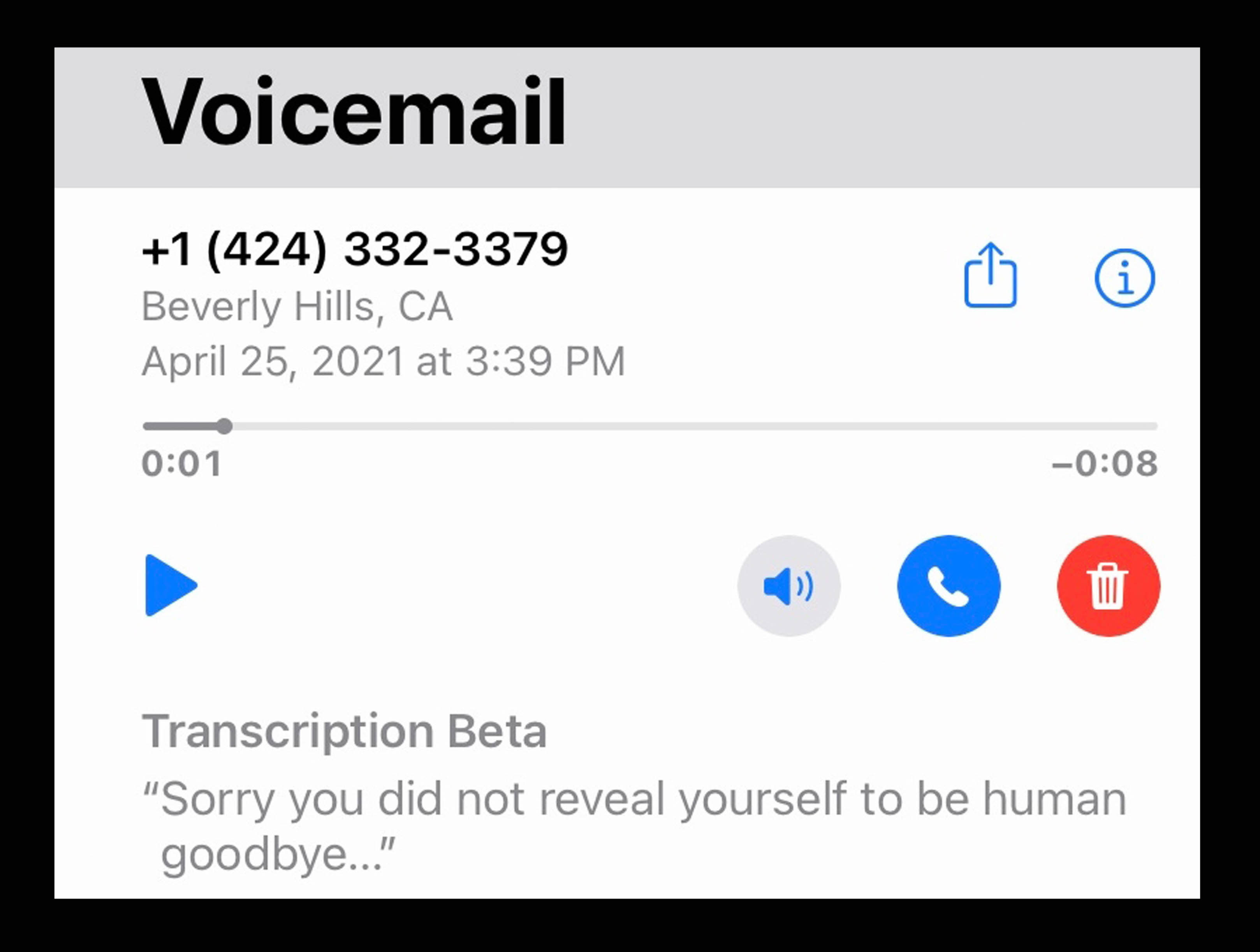 in a twist of irony, the measured-computerized female voice on our voicemail the other day admonished us, “sorry. you did not reveal yourself to be human. goodbye.”