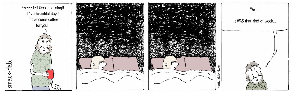 sometimes smack-dab is based on something we saw or heard. sometimes smack-dab is completely made-up. and sometimes smack-dab is autobiographical. this time – this cartoon – is most definitely that – from the first person.