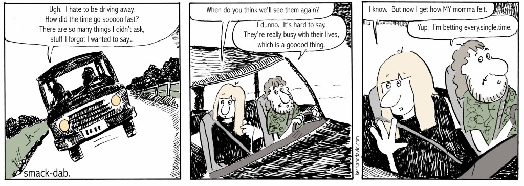 it doesn’t matter. how many times you have seen them. when the last time was. where. when. how. why. nothing. every single time there is a leaving – they walk out the door or you walk out the door – you pull away in the car or they pull away – or they get on the plane or you get on the plane – or, even, you hang up the zoom or they hang up the zoom, the facetime, the phone – you wonder. when is the next time?