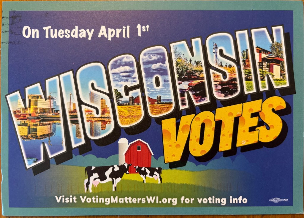 the other candidate – a woman – wishes to keep wisconsin out of the 19th century because, well, we’re a quarter of the way into the 21st century now. she would like women’s rights to be equitable to men’s, because, well, that equality thing and all. she would like people to have equal voting rights. again, that equality thing. enlightened in the usa.